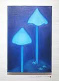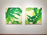 | 豊かな色彩感覚で描かれる植物や動物たちは、 まるで物語の担い手のように、いきいきと画面に登場する。 揺れるような輪郭は、丹念に描かれ、 表面的な表現のみに留まらない絵画としての強さも感じて欲しい。 |