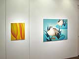 | 服部は幼い頃から油彩を描いていたが、大学では行程の多さ、技術の細かさなどに惹かれ、版画を学んだ。その技術を学ぶことは油彩の制作においても十分な糧になったであろう。版画と油彩、平行して制作していたが、近年では油彩が中心になっている。 平面を作ることを、追求する厳しい姿勢とはうらはらに、その画面は優雅だ。 花のモチーフなら、ビロードの肌触りのような、あまやかな匂いが漂うような妖艶さを醸し出し、草のモチーフなら青臭さが匂うような瑞々しさ、動物ならその愛らしい丸みを、細部を極力省いたうえで、的確に表している。 |