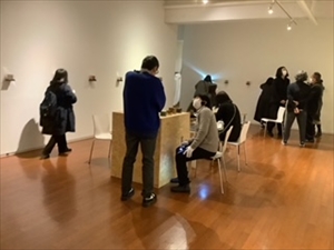 ●2月26日@ 尾関立子個展「既視感」 尾関立子個展「既視感」 銅版画をメーンにモノタイプ、油彩など多様な表現での発表です。 深い腐食による漆黒の黒は見るものに版画の概念を越えるような強いインパクトを与えます。 銅版そのものにインクを乗せてプレスするモノタイプの作品は偶然性も加味され、自由奔放な線や形が和紙に転写されます。 油彩はストイックに思える銅版画の黒と違って、色で遊ぶかのように伸びやかで屈託のない表現となっています。 それぞれの表現の違いを楽しんでいただければと思っております。 ●2月9日 ワクチン 7日にワクチンの接種を終えた。 副反応もなくホッとしている。 とにかく感染者の数が多く、身近でも感染者が出ていることもあり、高齢者にとってはワクチン接種を1日も早くと思っていただけに、行政の早い対応に感謝である。 接種場所も近所の医院で、待つ人も私1人、個室に案内されあっという間に終了。 以前の接種場所は自宅からかなり離れていて、会場も大混雑。 これだけの人では接種する前にコロナに罹ってしまうのではと心配するほどであった。 しかし今回はその反省もあったのだろうし、開業医の協力もあってか安全安心で実にスムーズに接種を終えることができた。 それにしてもコロナ騒動はいつまで続くのだろう。 すでに2年が過ぎ、感染者の数も増え続けていて、不安は募るばかりである。 年末に東京では感染者が数十人に減少し、収束の兆しが見えていただけに、オミクロン株の猛威は驚くばかりである。 画廊の展覧会も始まったばかりであるが、来場者は少なく安閑とはしていられない。 先日も老舗画廊の美術館クラスの名品が並ぶ周年記念展の初日に行ってきたが、来ているのは私一人で、思わず日にちを間違えたのかと思ってしまった。 私のところは抽象画中心の展覧会ということもあるのだろうが、大手老舗の画廊までが閑散としているのは、やはり感染者の増加が影響しているのだろうか。 無理して来ていただきたいとはとても言えないが、いい展覧会と自負しているので、せめてワクチン接種を終えた方からでも、ご覧いただければ幸いである。 ●2月4日 「LUX-光」展 出品者の多くが大きなコンクールのグランプリや優秀賞受賞という実力者揃いのグループ展です。 今のご時世美人画やイラスト系アートに目が行きがちですが、抽象画や半具象を描いている作家達にも逸材が多くいます。 そんな作家達にあえてスポットライトを当て、もう少し幅広い目でアートを鑑賞していただけたらとこのグループ展を企画しました。 タイトルは「LUX-光」と付けました。 それぞれの作品が光を意識し、マティエールの奥深くから滲み出す光が画面を覆います。 その光が希望に満ちたものであると願い、このタイトルにしました。 皆さんが温かな光に包まれて、昨今の沈みがちな心を奮い立たせることができる展覧会であればと願っています。 ご高覧をお待ちしております。 ●2月2日 思い出 早いものでもう2月に入った。 オミクロン株の勢いは止まるところを知らず、緊急事態宣言も間近となってきた。 私は7日に三回目のワクチン接種予定となり年寄りは優先されているのだが、今回は子供達の感染が多く、孫達もそうだが、幼稚園や学校の閉鎖も相次いでいる。 コロナのせいではないが、ここ最近知人の訃報が相次ぎ、ついつい自分の年齢と比べてしまう。 昨日は石原慎太郎元都知事が89歳で亡くなったとのニュースが流れた。 石原慎太郎元知事で思い出すのは、知事が現職の時にアートフェア東京が初めて国際フォーラムで開催され、会場に知事がお見えになり、私どもの作品を購入してくださったことである。 また石原氏がキャプテンをしていたクルーザーに私の大学のヨット部の先輩が何人かクルーとして参加し、レースで活躍していたことも石原元知事との思い出の一つである。 話は戻るが、このフェアでは私のところは鈴木亘彦のガラスオブジェ展を開催していて、うちのブースは大人気で80点の作品が売約となり、これも石原元知事のおかげであったかもしれない。 石原知事だけではなく前都知事で、国際フォーラムの理事長であった鈴木俊一氏も噂を聞きつけて会場に駆けつけ購入をしていただいた。 フェアが終わり、フェア会場の上のとてつもなく広い理事長室に作品を飾らしていただいたのも懐かしい思い出である。 また今日開廊50周年を迎える泰明画廊の亡くなられた先代で私が勤務した梅田画廊の先輩でもある川田社長にもこの時作品を購入していただき、その時のことを思い出しながら今日の記念展に伺うことにしている。 私も画廊の仕事について53年が過ぎたが、周りの訃報を聞くたびにあとどのくらい元気でいられるかを考えてしまう。 残された人生そんなの長くはないが、悔いのないように生きていきたいと思う。 ●1月22日 印象記@ 同じく紋谷幹男氏の浅井飛人展の印象記です。 展覧会タイトルは、ーAlways from here ー。