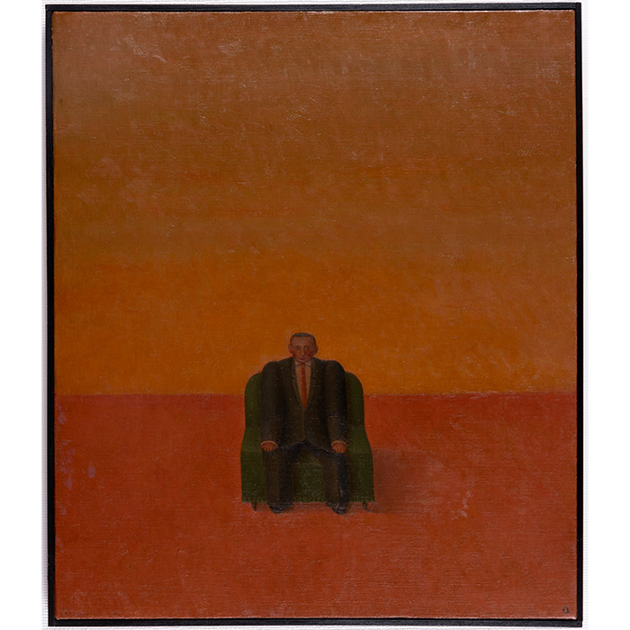 座る男