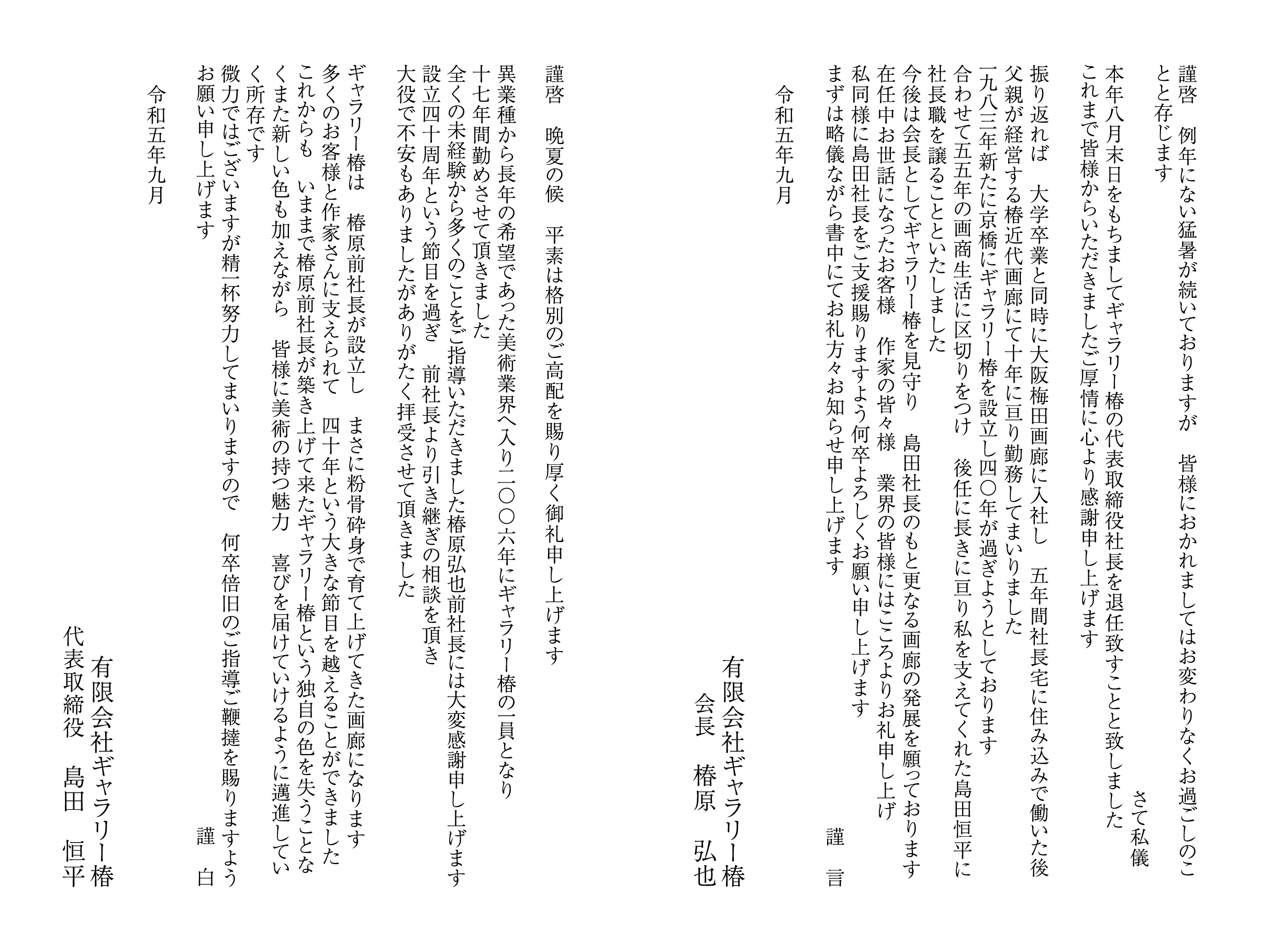 ギャラリー椿 代表退任と就任のご挨拶