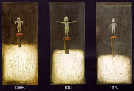 今回は、セピアの空間を舞台として、そこに、一体づつの人間を登場させたシリー ズを作品群の中に入れてみました。闇の中に浮かぶ白い人の形、そして、それらが連 なった時に出来る不思議な動きから、何かを感じ取っていただければと思います。お問い合わせ e-mail - gtsubaki@yb3.so-net.ne.jp