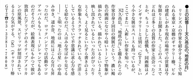 天久高広展 − 地底の月 − 2003年10月18日(土)〜10月25日 (土) a.m.11:00〜p.m.6:30(日曜休廊)