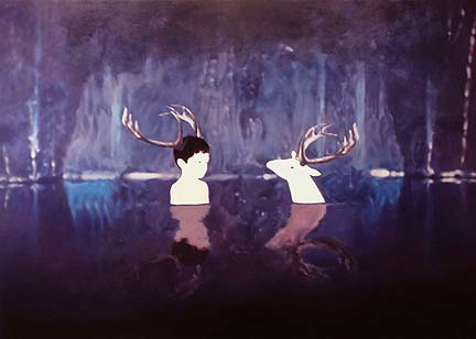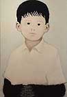 | あれは一昨年だったか、山本麻友香さんの作品をはじめて目にしたとき、すべてがぼんやりとしたシルエットでありながら、どこか記憶の奥底にはたらきかけてくる不思議な感覚を味わったことがある。とりわけさまざまな西欧の少女の、おそらくは写真を手がかりとした絵にその感がつよく、その無言の影のような存在に、遠くボルタンスキーをおもわせる「告発」のようなものを感じたほどだ。こうした原型的なもの、始原的なものを求めるつよい志向はこの画家に一貫しており、あるいはそれとの絶えざる差異ないし葛藤のうちに彼女にとっての芸術は胚胎されているのかもしれない。自分の母親の身体を銅版にじかにかたどったモノタイプ、≪mama≫のシリーズ(1996年)はその典型とも言うべきものだ。しかも、注目すべきことに、ここで個性的なものはすべて抹消されているではないか。 同じことは最近作の幼い少年をモチーフとした一連の制作でも明らかだ。発端となったのは山本さん自身の出産と育児という特殊にして根源的な事情にちがいないが、ふつうの女流画家であれば、いや、大体が芸術家というものは、子どもとか育児の話は避けるところを、このひとは「子どものことしか考えられなくなって、今から思うと不思議なんだけれど(…)巣づくり行動とかしてるんですよ。すごく大きいお腹をしているのに大掃除を始めたり…」などという。その一方で実際に描いているのはまさに原型的、もしくはどこかジュリアン・オピーの人物をおもわせる、点のような目をした記号的な子どもなのである。 とはいっても、ただの子どもの絵ではない。猿の腕とか、鹿の角をした、その一部が動物と化している、あるいはつながっている未分化状態のヒトとしての子どもの絵なのである。 子どもとは何か?大人になる以前の未成熟な生きもの――というのは、西欧にいまだ伝統的な考え方である。ラテン語で「幼児」を意味する infans (英語の infant)はそのものずばり「話せない者」の意味。だから子どもは犬のように調教すべきなのである。しかし、そういう未分化の存在であるからこそ、子どもは存在の生あたたかな暗闇もしくは混沌にもっとも近づいているのではないか。 あえてプラトンを持ち出さなくとも、私たちは大いなる、多にして一なるものからほとんど無限に分離され、放逐された存在である。ここで悲劇的あるいは喜劇的なのは、そうした存在の故郷のかすかな記憶を宿したまま私たちが生きていることだ。分離された者にはつねに合一、合体の衝動がつきまとうが、それは結局のところは――これをエロスと呼んでもいいだろう――私たちの、存在の根源への意志ともいうべきものであり、すべての芸術はここに出来するのかもしれない。 山本麻友香さんは育児に追われるなか、2、3号のキャンバスを用意しておいて、スキをみつけてはイメージを描きつけたものを整理、拡大して作品としたのだという。ここに、この必死の営為に、大いなる根源との格闘を直観するのは私だけではあるまい。これらの静謐な子どもの絵にはエロスの影が落ちている。ただの子どもの絵ではないのである。 |