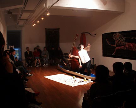 Spiral Shaking Strobe(木佐貫共作)」「tinctura2」「青空vol.2」と、笠井作品に続けて出演する。一方、サイトウキネンフェスティバル(「ファウストの劫罰」小澤征爾指揮、ロベール・ルパージュ出演)、二期会オペラ(「カルメン」実相寺昭雄演出、山田せつ子振付)への出演や、笠井瑞丈を始めとする他のダンサーとの共作、詩人、写真家といった他ジャンルのアーティストとの活動なども精力的に展開している。02年度は、文化庁新進芸術家国内研修制度研修員としてコンテンポラリー、バレエ、オイリュトミーの研鑚を積む。K・身体表現教室やASIAS主宰の小学校のワークショップで指揮も務める。2003年には、第35回舞踊批評家協会賞「舞踊批評家協会 新人賞」にノミネートされる。自主企画公演として01年4月「DIVE」、02年9月「甘露」、03年11月「沈める珠」を発表。上村なおかX(エスク)代表。