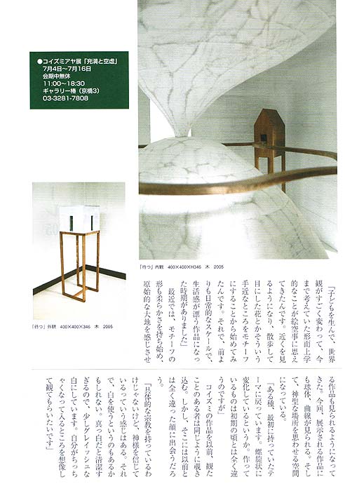 GALLERY TSUBAKI@ƒMƒƒƒ‰ƒŠ[’Ö ^ ƒRƒCƒYƒ~ƒAƒ„“W@g[–ž‚Æ‹ó‹•h@2005. 7/4 - 16