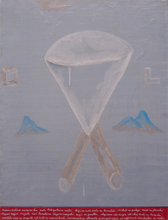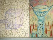 描かれた怪物 板に油彩、紙、木、他 685×890mm |
