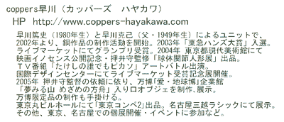 coppers ‘ì “W 2006”N6ŒŽ19“ú(ŒŽj`6ŒŽ24“ú(“yj a.m.11F00`p.m.6F30iÅI“úp.m.5F00E“ú—j‹x˜Lj
