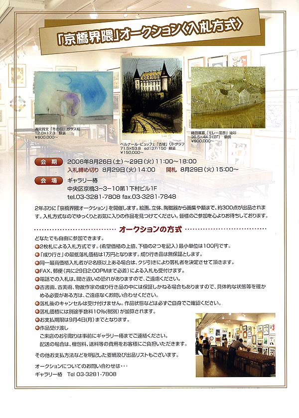 会場:ギャラリー椿 中央区京橋3-3-10第一下村ビル1F