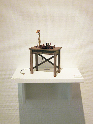 | 造形作家・内林武史のギャラリー椿では3度目の新作展です。 何かを「発見」するように作品を見て、触れて、楽しめる「屋根裏」をテーマにした立体造形の展覧会です。 電球がほのかに光ったり、モーターで仕掛けが動く作品、 実際にラジオやCDを聞くことが出来る小さなオブジェなど約20点の新作を展示予定。 |