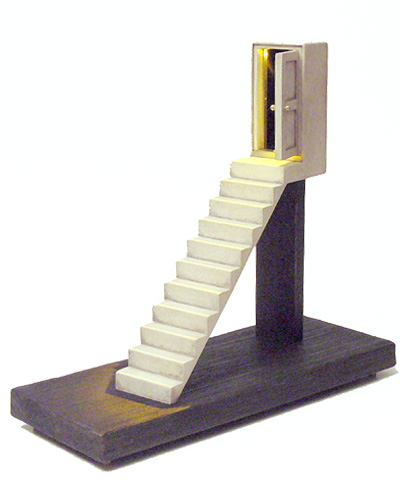 屋根裏へと続く薄暗い階段は、とても不思議な魅力があります。西日が射し込む屋根裏部屋で、目を閉じてぼんやりしていると、どこからともなく古いレコードの音が聞こえてくるようです。そんな「誰も居ないのに人の気配がする」のは誰かがそこを居心地のいい場所としていた事で、過去の「誰か」との時間を共有する事が出来るから、ではないでしょうか。 東京の団地で生まれ育った私には想像の世界でしかありませんが、この展覧会はいつかそんな場所をみつけて、自分の居心地のいい場所にしたい。という願望を満たす為の疑似空間でもあるのです。 内林武史 |