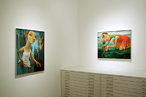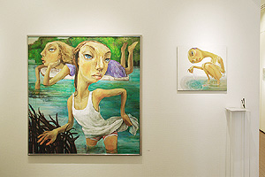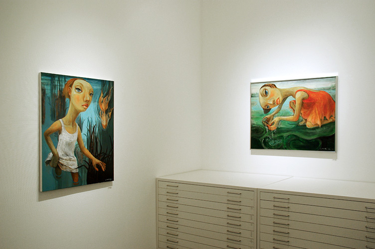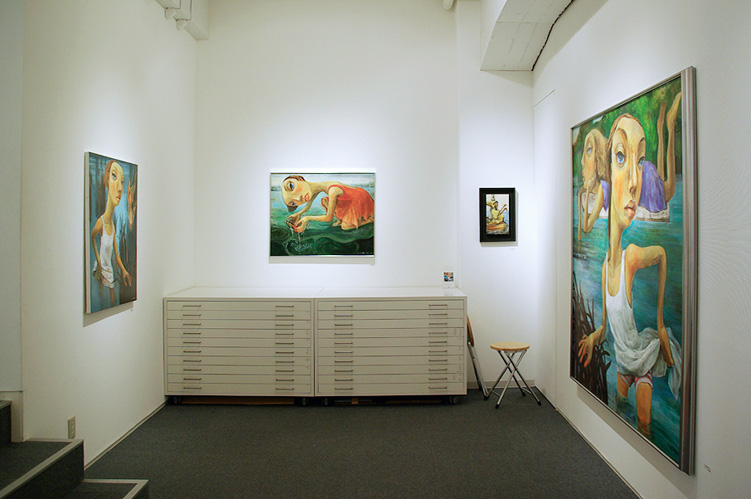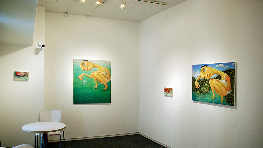 探し求める人達も何作かつくっています。 今回も金魚を幸せの象徴ととらえ「金魚すくい」の状況など、いろいろな視点で描きました。 |