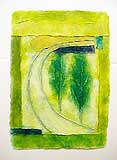 | 子供の情景-28[水面に映る木立ち] 手漉き和紙(こうぞ、顔料) 2008 29.5×20cm |