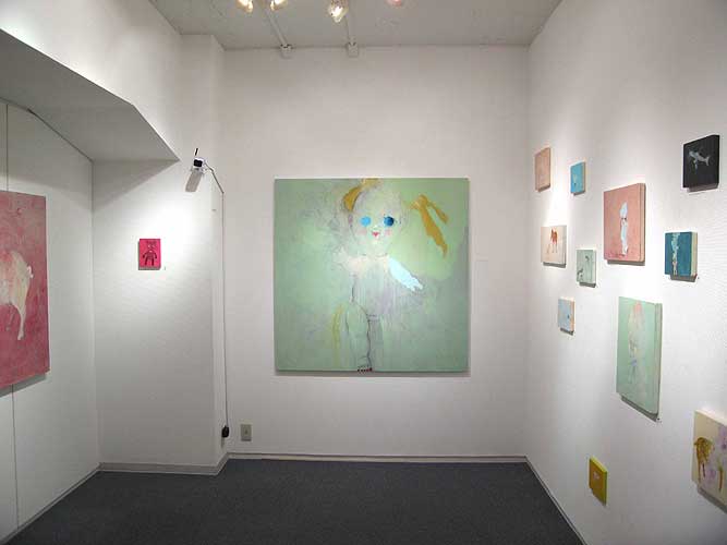 高木さとこは京都で活躍する若手作家、個展を重ねるごとに着実にコレクターを増やし、昨年にはアートコレクターによる企画展作家に選ばれ、個展が開催された。 高木の描き出すテーマには観るものに直接伝わる簡潔性が携わっている。 子供の頃に常に傍にあった愛玩具。自身の分身ともいえる玩具への愛惜の念が高木さとこの作品のモチーフとなっている。たとえ古く壊れても、大人の手によって捨てられようとしても、表情を変えない人形たちに、一種の狂気やユーモアを込めて描く高木の作品は、一度見たら心から離れない。 作品にはコラージュをほどこす場合もある。 |