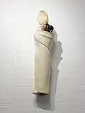 | 作り手と作品との距離を測る性格を持つ版画と出会ったのは 大学三年の懐かしくも狭い工房 時間以外に持つものもない学生にも世に繋がる手だてが ここにあると思ったことを今でも憶えています 鈍い若者もやがて手は慣れ知恵がつき 申し開きの出来ない絵の薄情から逃れるように 作り始めたのが玩物めいた陶の立体 以来木彫ブロンズと素材を試みながらも 手に馴染んだのは最初に触れた陶でした つめたい土塊から眼の前で立ち上がるかたちと手の悦び 抱えるほどの大きさや掌の上に乗る愛玩 背の表情、撫でさする肌のここちよさ 手の内で生まれ空気と陰をまとい 作り手から易々と離れてゆく 絵は良くも悪しくも私から離れてはくれない 絵と彫刻は比翼の翼 求めるものに抱きとられ脚をなくした者が 地に墜ちぬよう与えられた翼 草臥れ始めた羽根を繕いながらの二十二点 ご高覧いただけますようお願い申し上げます |