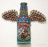 | 小川陽一郎は1978年生まれの若手作家です。2004年 東京造形大学美術学科絵画専攻版表現コースを卒業してから、「小川陽一郎HAPPY HOUSE」シリーズで展覧会を開催してきました。 ビーズ、ガラスデコ、模造パール、石粉粘土、造花、きれいな色、きらきらするもので立体を埋め尽くすように装飾します。 今回は「小川陽一郎のHAPPY HOUSE 5-NEGAI-」としてギャラリー椿のGT2空間を埋め尽くします。 HAPPY HOUSE というタイトルからもわかるように小川が、モチーフとして取り上げるものは日常の中のものです。 彼が無条件にかっこいいと思うものがとりあげられます。パトカー、力士、兜、恐竜など、パワフルで力を象徴するようなものたちに、密度の濃い装飾を施した作品たちは、勢いと力に満ち溢れ、見るものを圧倒します。 小川作品の持つ力は私たちにパワーを与え、なんだか笑いだしたいような、元気で幸せな心持になってしまします。 タイトルにある「願い」とは、小川の憧れであるパワフルなモノたちが、観るものの心を突き抜け、迷いや恐れを振り払ってほしいという願いがこめられているのではないでしょうか。 立体作品約29点展示が展示されます。 ぜひ小川陽一郎のHAPPY HOUSE 5-NEGAI-展をこの機会にご高覧いただけますようお願い申し上げます。 |