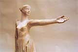 | ギャラリー椿は伊津野雄二さんの5回目の個展を開催します。 伊津野さんは、木彫を主として制作されています。 顔からネックライン、デコルテラインはとても滑らかなタッチで仕上げ 顔のバランスからすると少し逞しい腕と足は荒々しいノミのタッチを残しています。 近寄りがたい神々しさと、強さ、それに相反する慈愛、清らかさ、といった美しさと逞しさが 同居する古代神話の女神像とも、女性の理想像とも捉えられるような彫像です。 今回はこの女性像をテラコッタ、ブロンズで作り、イメージを繰り返すようにします。 この女性像と、軽やかに走っている女性像とともに、大理石彫りの小さな家と街も展示されます。 つつましやかに、しかし逞しく連綿と続く私たちの命と暮らし、そういうものが伊津野さんの根底のテーマとなっています。 今回は走る像が展覧会に楽しげな躍動感をあたえています。 ぜひこの機会にご高覧下さい。 |