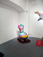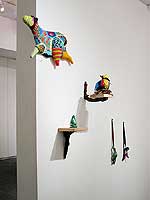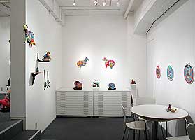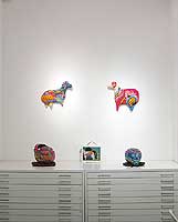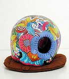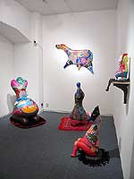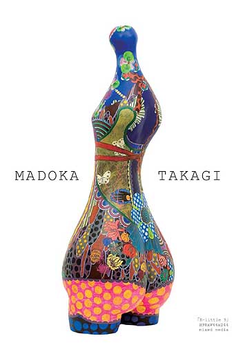 | 高木まどかは1983年生まれ、今年多摩美術大学大学院を卒業したばかりの若手アーティストです。 デフォルメされた人体像に隙間なく埋め尽くされた文様と花と昆虫たち、その色彩に目を奪われます。 アジアやアフリカの装飾を思い起こさせる作品は、土着的で力強い生命力を感じさせながらも、現代風ポップに昇華し稀有な存在になっています。 2007年在学中ギャラリー椿GT2での初めての個展で話題をさらい、2008年台湾でグループ展に参加、2008〜2009年のアジアのアートフェアでも人気を博しています。 平面を含む立体15点を展示します。 この機会にどうぞご高覧下さい。 |
