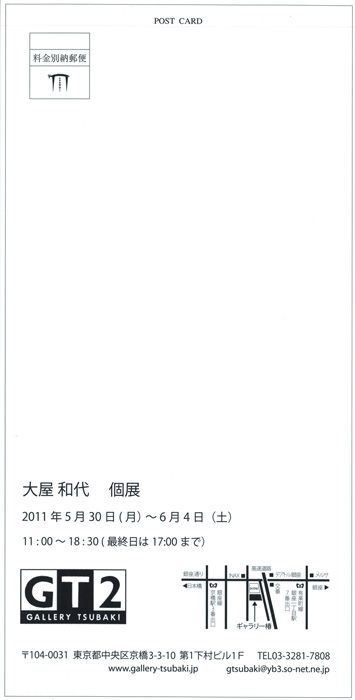 大屋和代 Kazuyo Oya 2011年5月30日(月)−6月4日(土) 11AM〜6:30PM(最終日は5:00PMまで)