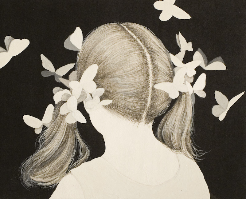 9.岩渕華林 白い蝶 273×220mm 和紙、ミクストメディア(パネル張り) 2011 |