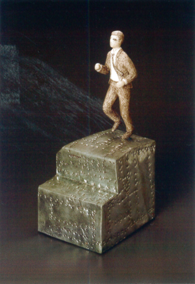 26.呉本俊松 目覚めたサラリーマン 355x140x170mm 木、鉄、ブリキ、モデリングペースト 2010 |