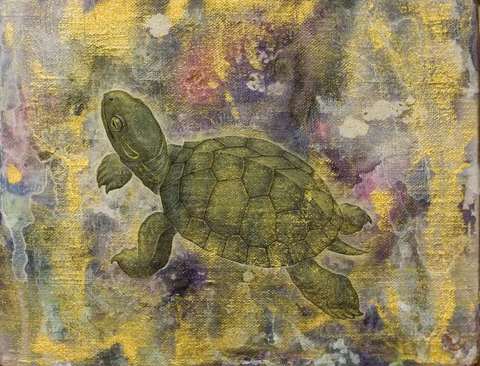 44.恒松正敏 遊亀図 140x180mm(0号) 油彩・樹脂絵具/キャンバス 2011 |