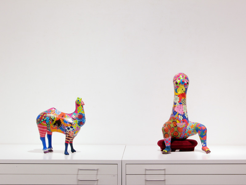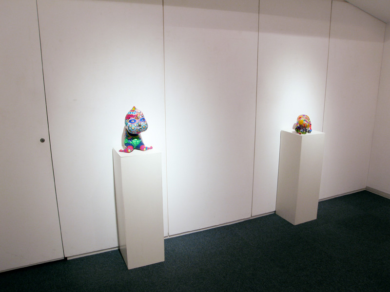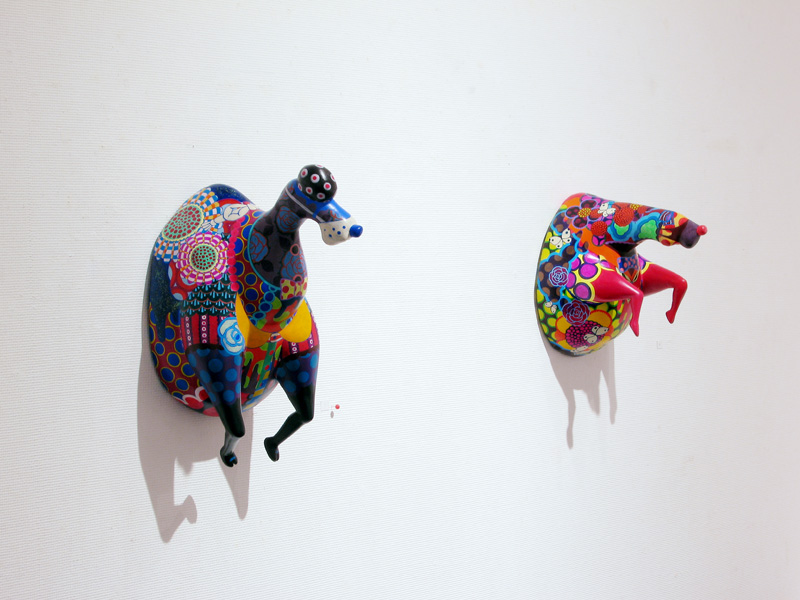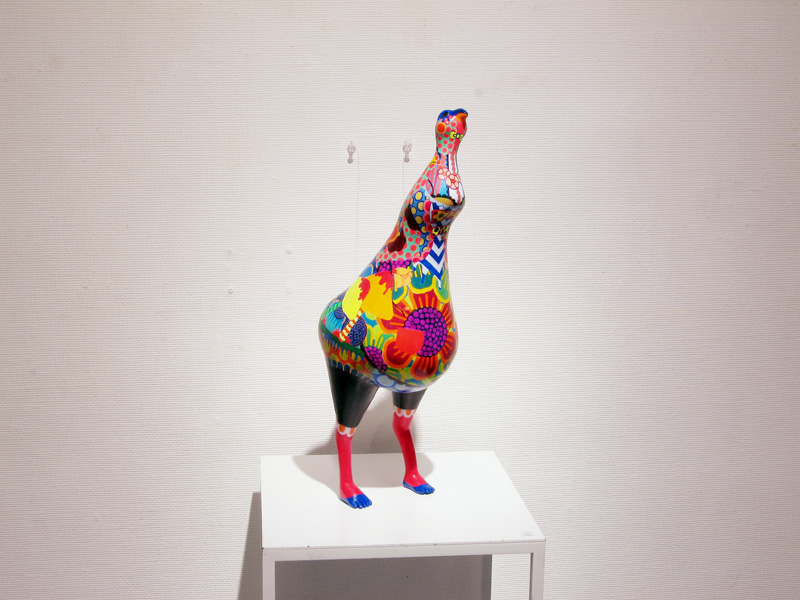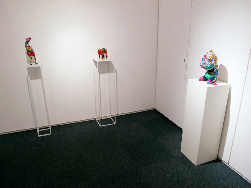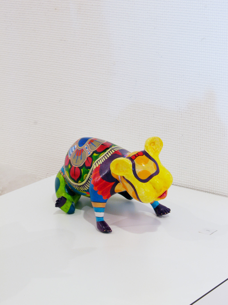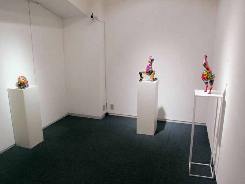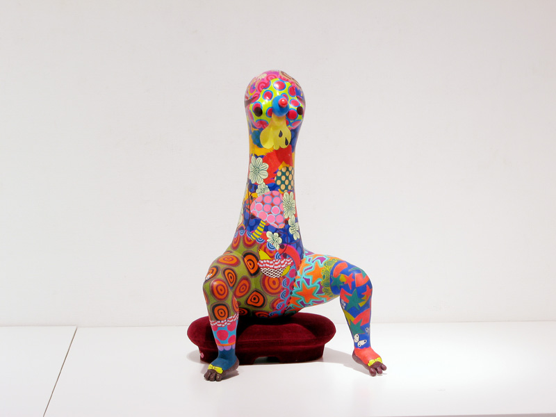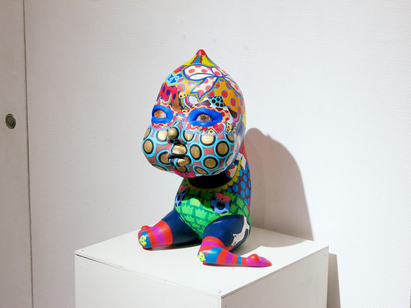 隙間なく埋め尽くされた極彩色の文様。 高木まどかがつくる立体作品は強烈な印象を残します。 文様は古来、死や魔から自分、家族、集落、部落などを 守るために体や装飾品や家や門に刻まれてきた魔除けの 意味合いが強かったのです。 高木の作品の装飾文様からは力強い生命力を感じます。 その力強い生命力が魔をよけていたのだということがわかります。 いつしか文様は装飾としてしか認知されなくなりましたが、 高木の作品をみると本来の意味を体感できるようです。 現代では魔除けとはただの儀式や慣例、縁起物のようになっており 魔を感知したり信じたりはしないでしょう。 しかし今、精神に忍び寄る魔を払うことが、 切実に必要なのではないだろうかと思います。 2007年在学中ギャラリー椿GT2での初めての個展で話題をさらい、 2008年台湾でグループ展に参加、 2008〜2010年のアジアのアートフェアでも人気を博しています。 立体13点を展示します。 この機会にどうぞご高覧下さい。 1983 徳島生まれ 2008 多摩美術大学絵画学科版画専攻卒業(M.A.) 個展 2007 ギャラリー椿GT2(Tokyo) 2009 Shonandai my gallery (Tokyo) 2009 ギャラリー椿GT2(Tokyo) 2010 Shonandai my gallery (Tokyo) 2011 ギャラリー椿GT2(Tokyo) アートフェア及びグループ展 2008 Gallery J.Chen(Taipei) Art Taipei 2008(Taipei) Art Singapore2008(Singapore) 2009 Art Taipei 2009(Taipei) 2010 Art Taipei 2010(Taipei) 2011 Art Taipei 2011(Taipei) |