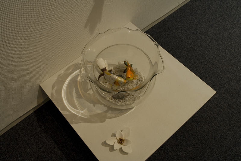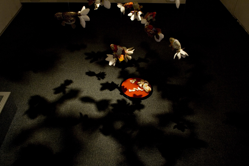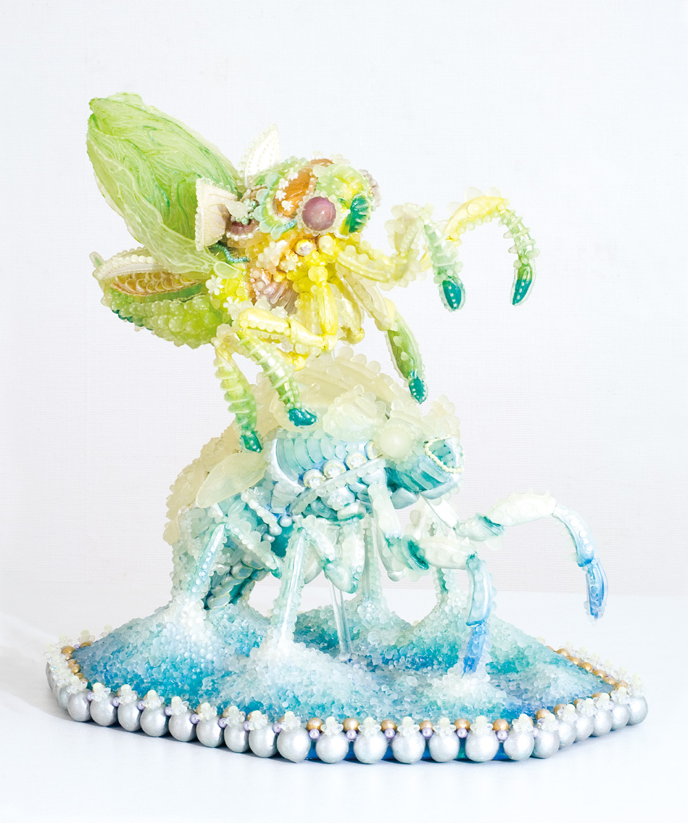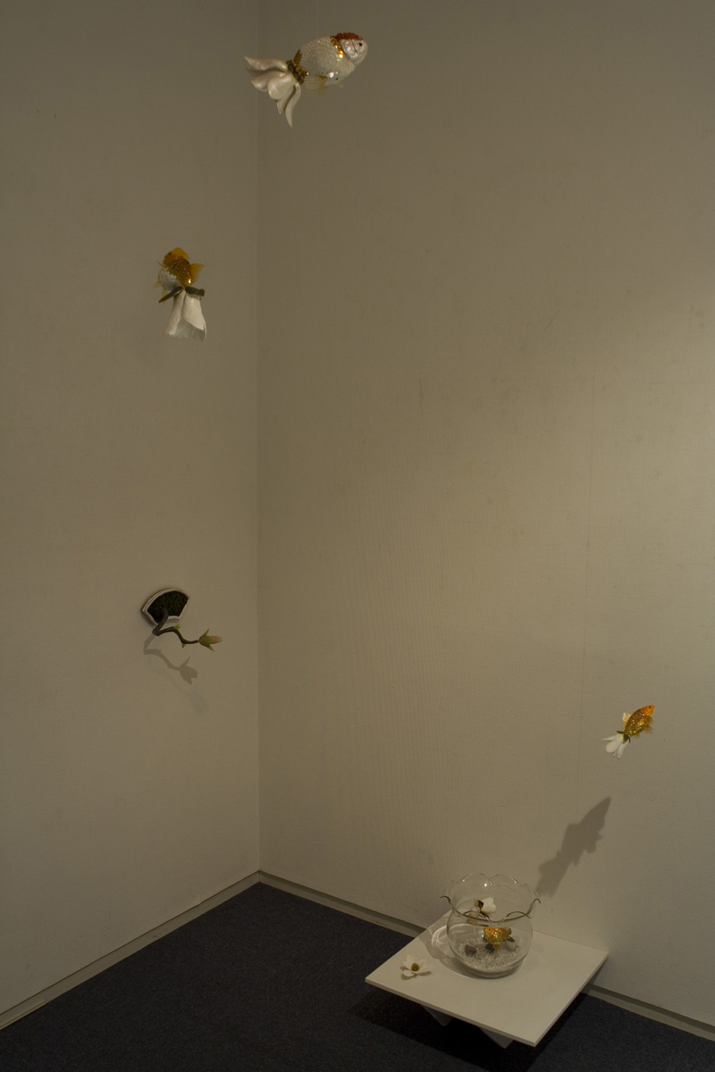 「羽化 咲く」mixed media、H42x43x33cm、2011年