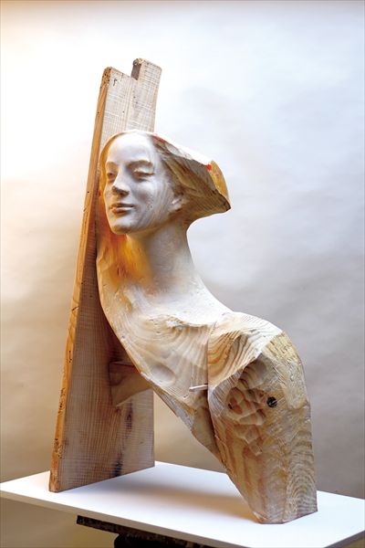 「されどなお汝は微笑むか」 木彫(松)、 2013、 103x65x36cm