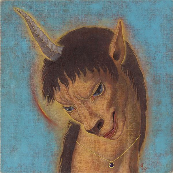 「不機嫌な一角獣」 油彩・樹脂絵具/板に麻布、22.7x22.7cm、2014