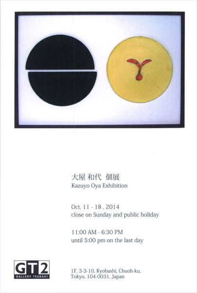GT2 大屋和代 個展 Kazuyo OYA solo exhibition 2014年10月11日[土]−18日[土] October 11 - 18, 2014 11:00AM - 6:30PM 日曜祝日休廊(最終日5時まで) Close on Sunday and Public Holiday