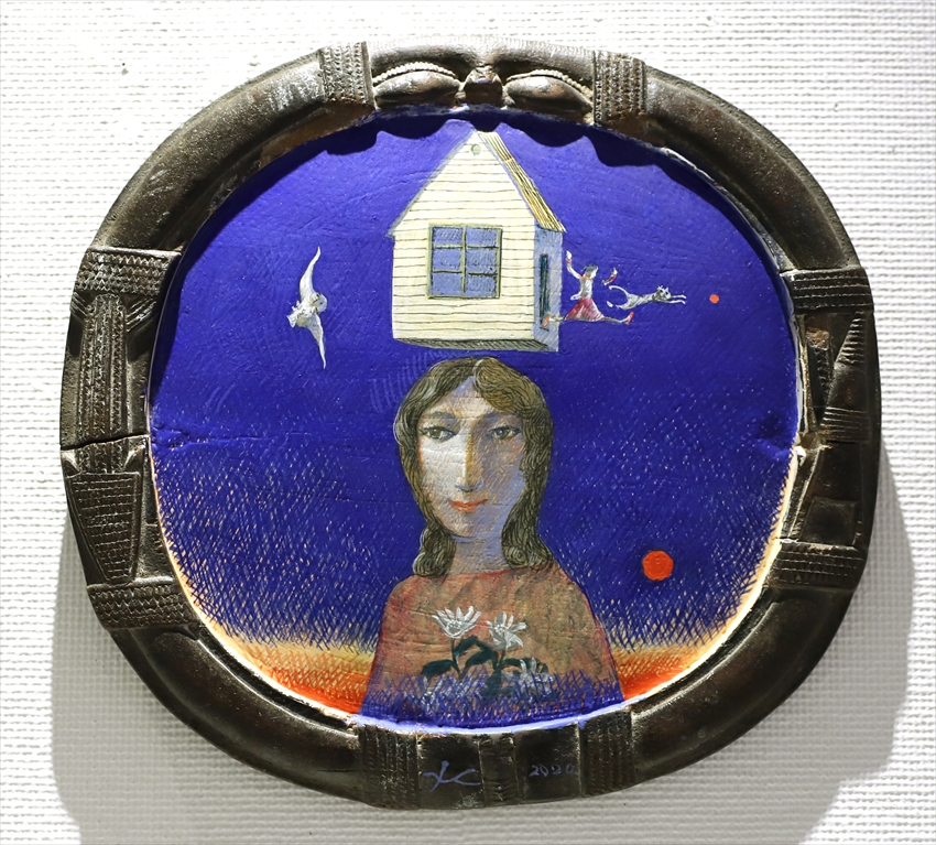 19 空に・・・・ 27×28.5×1.7p ヨルバ族の占いボード 2020