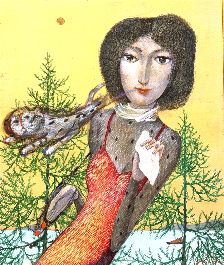 21 猫言葉 F8 45.5×38p パネル/テンペラ、油彩 2019