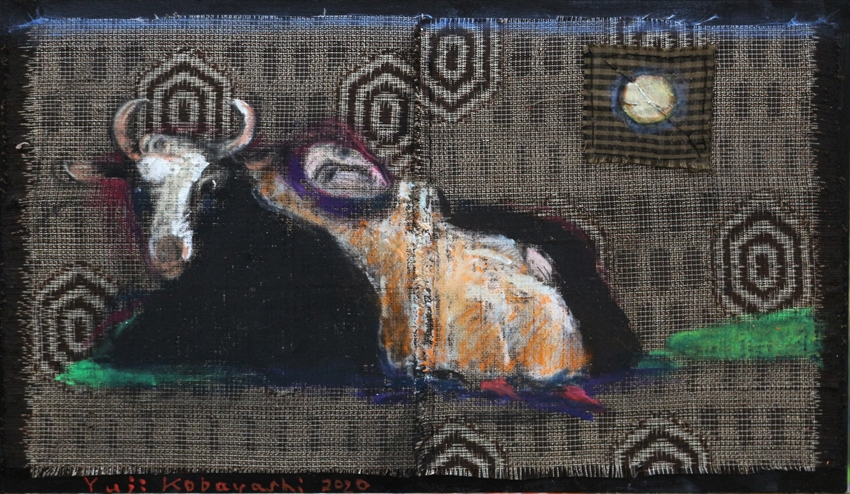 30 牛と居る人 21×36p 故裂(大島紬)/サクラクレパス 2020