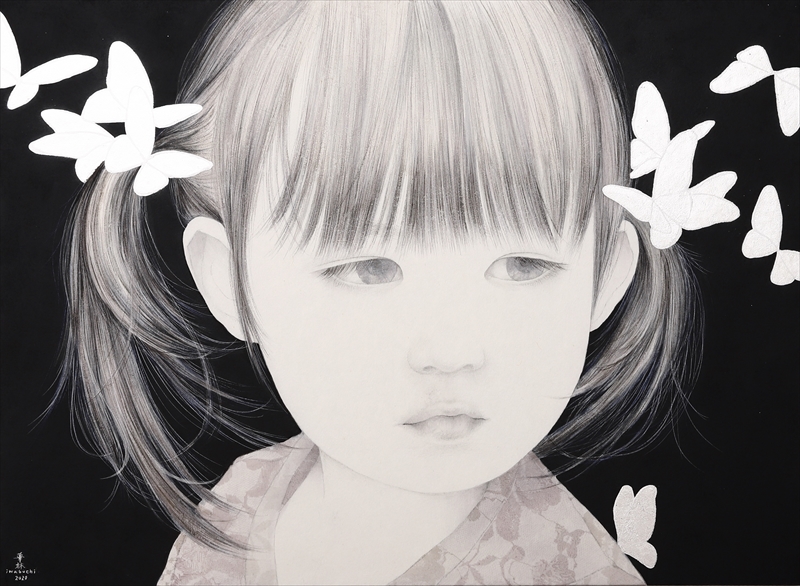 3 岩渕華林 まどろむ 33.3×45.5cm 和紙に墨、岩絵具、鉛筆、銀箔、銀泥、シルクスクリーン 2020年