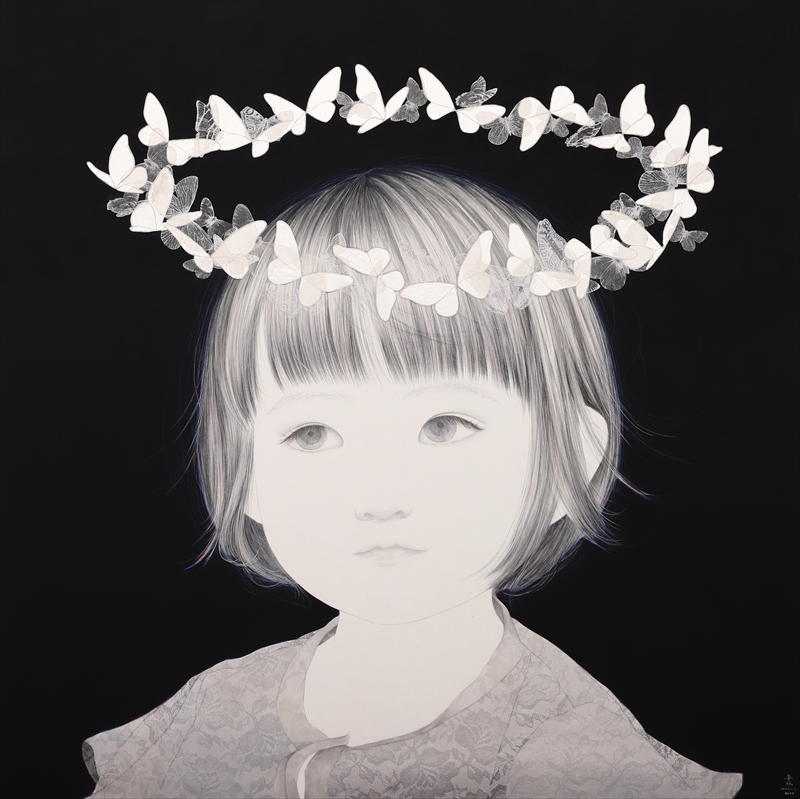 4 岩渕華林 きょうはいいことがありそう 72.7×72.7cm パネルに和紙、顔料、 銀箔、シルクスクリーン 2020年