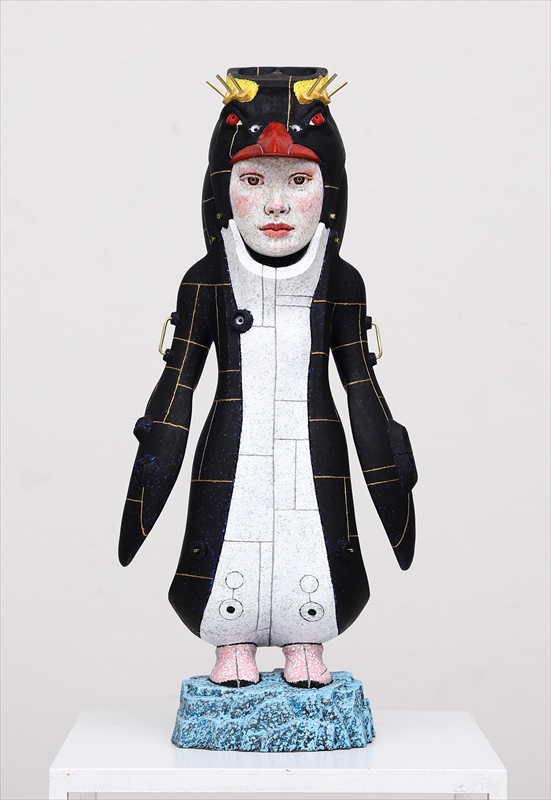 7 木下 雅雄 皇帝人鳥少女 H40×W17×D15cm テラコッタにアクリル絵の具で着色 2020年