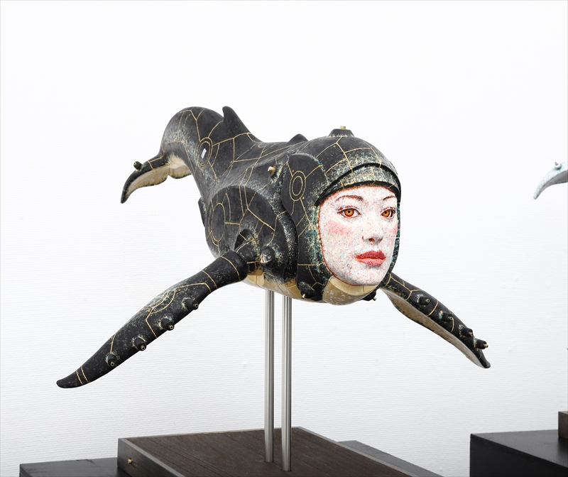 11 木下 雅雄 黒鯨少女 本体:H30×W46×D52 台座含:H40cm テラコッタにアクリル絵の具で着色 2020年
