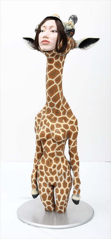 13 木下 雅雄 麒麟女史 H100x41x23cm 木にアクリル絵の具で着彩 2014年