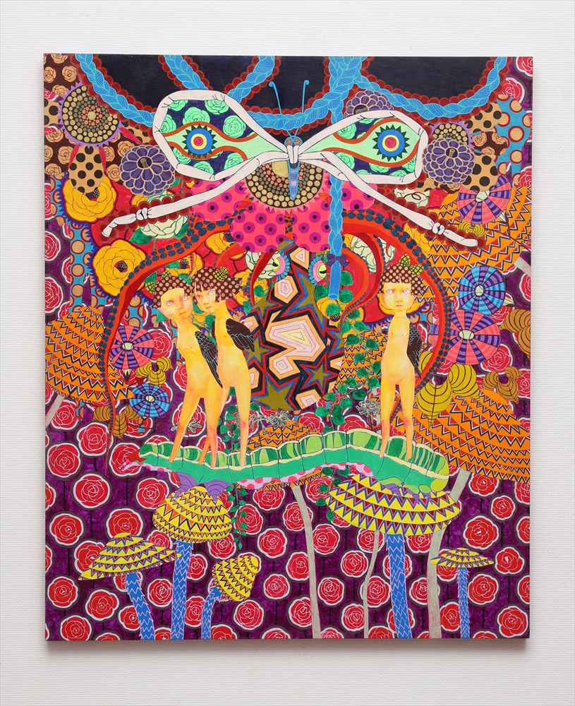 11 三人の法則 F20 72.7×60.6cm パネルに和紙、水彩、アクリル着彩 2012年
