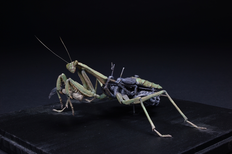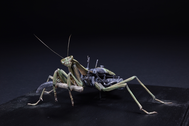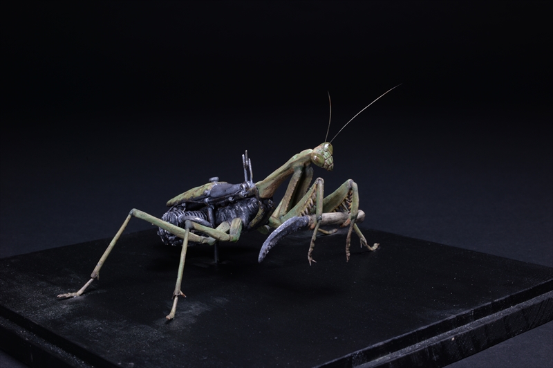 15 「そろそろ稲刈りの季節です。 鋸鎌はいかがですか」(オオカマキリ) 陶 19x20x10 cm 2019