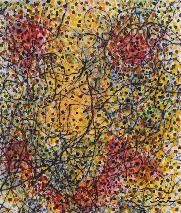 24 顔 13.7x11.7 cm 銅版画をコラージュ、彩色、キャンバスボード 価格: 88,000 円(額・税込)