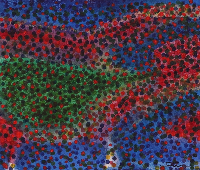 27 赤い島 11.7x13.7 cm 銅版画をコラージュ、彩色、キャンバスボード 価格: 88,000 円(額・税込)