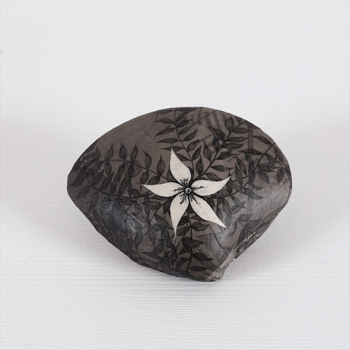 30 白い花 7.5x9x2 cm 貝殻に銅版画をコラージュ 価格: 55,000 円(額・税込)