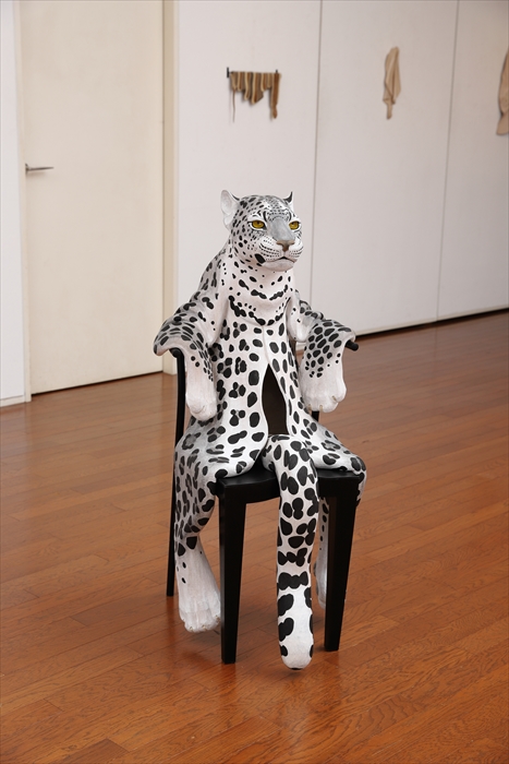 1 FAKE FUR -Chair 2021- 楠、椅子、との粉、 胡粉、 墨、アクリル 107x52x60 cm 2021