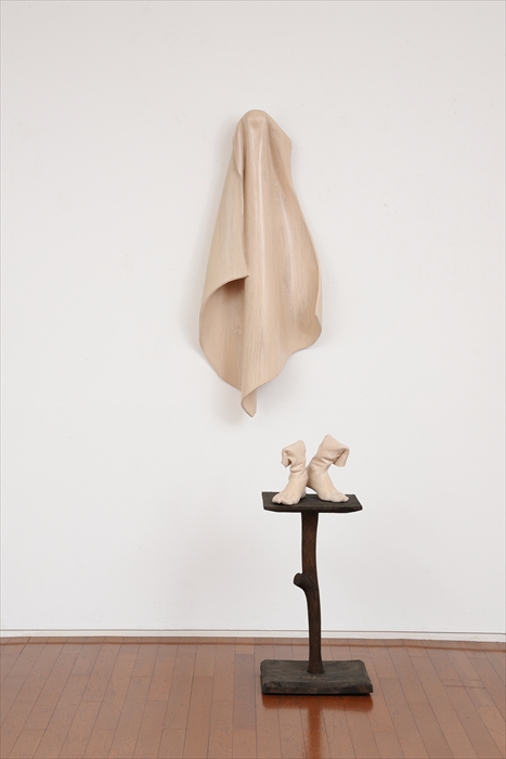 15 Prologue -始まりの人(おとこ)- 楠、との粉、石粉、 顔料、アクリル 210x60x80 cm(サイズ可変) 2021