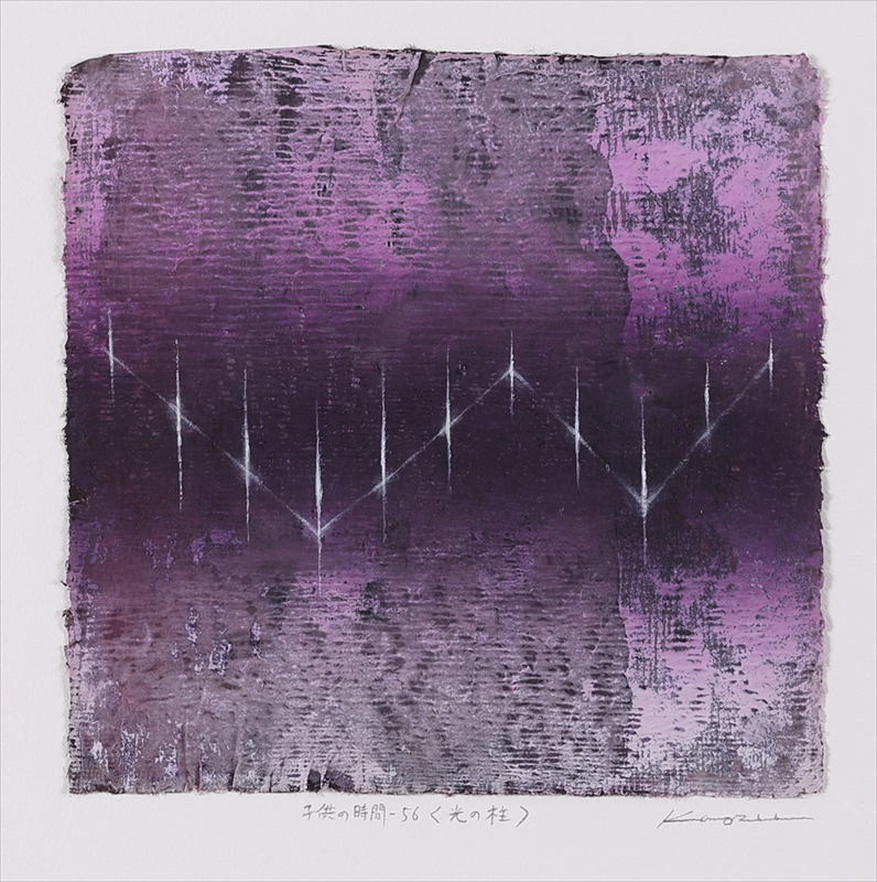 4 子供の時間ー56 <光の柱> 和紙、アクリル絵具 200×205mm