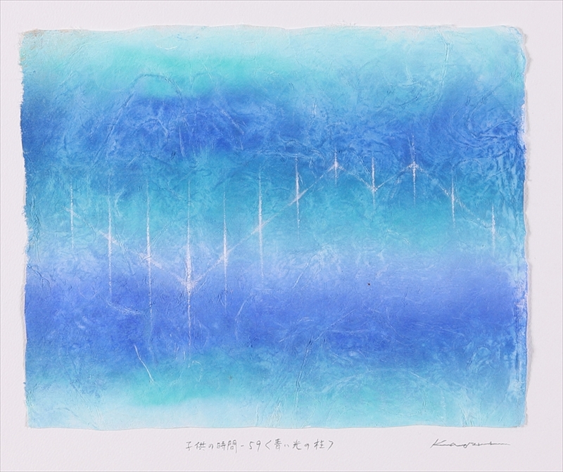 7 子供の時間ー59 <青い光の柱> 和紙、アクリル絵具 190×235mm