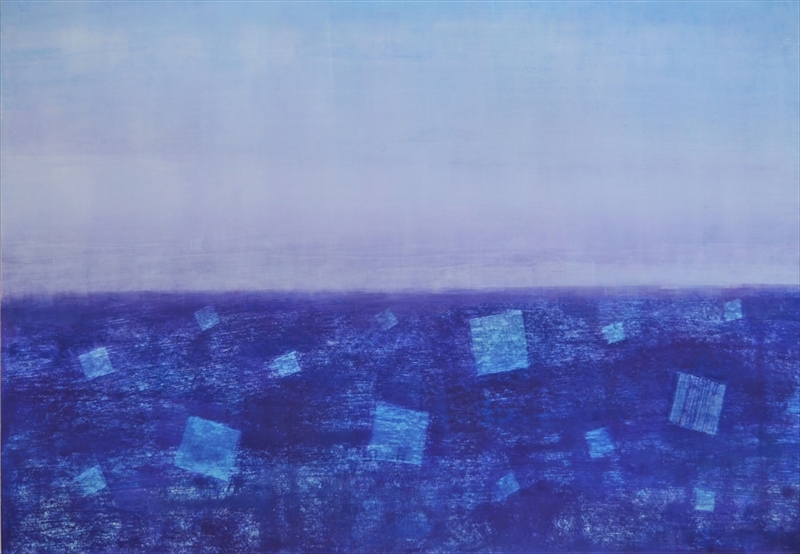 16 子供の時間ー69 <青いかけら> 厚紙にスクラッチ、油彩 700×1000mm