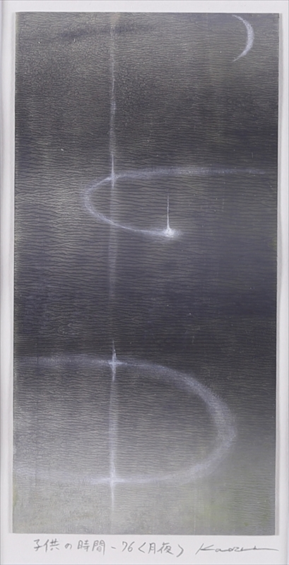 23 子供の時間ー76 <月夜> 厚紙にスクラッチ、油彩 195×100mm